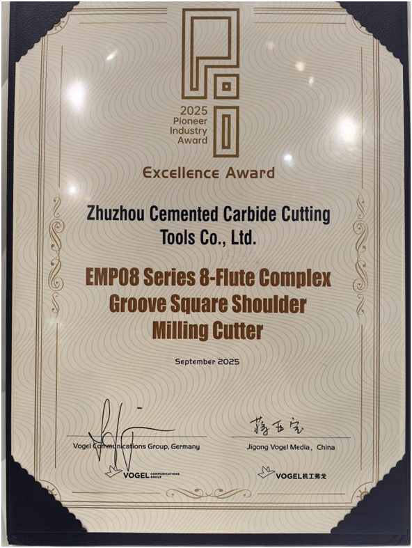 展會期間,一則喜訊為ZCCCT的“漢諾威之旅”再添光彩——ZCCCTEMP08系列銑刀成功斬獲“PI Award(弗格出海先鋒獎)”!這一獎項旨在表彰在全球市場中展現(xiàn)出創(chuàng)新力與競爭力的企業(yè)及產(chǎn)品,EMP08系列銑刀憑借優(yōu)異的切削性能、廣泛的適用性,以及ZCCCT在海外市場的深耕成果,最終從眾多競品中脫穎而出,成為中國刀具品牌的“獲獎代表”。